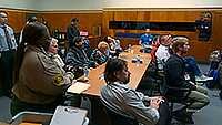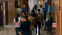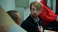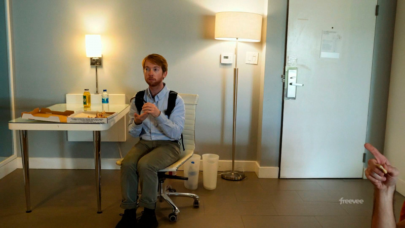 "На него производит большое впечатление то, что, оказывается, за стеной зала заседания располагалась целая студия с "центром управления", откуда съемочная группа руководила всем происходящим."