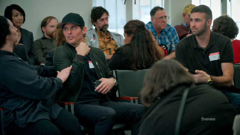 Надо сказать, что выбранный шоураннерами и режиссером Джейком Шиманьски стиль постановки этого шоу - очень аккуратный и сдержанный. Там только Джеймс Марсден в роли Джеймса Марсдена сразу зажигает вовсю - это так и полагается по сценарию, - а с остальными присяжными зрителей знакомят постепенно, и когда мы уже начинаем хорошо их различать, некоторые из них периодически выходят на первый план.