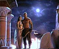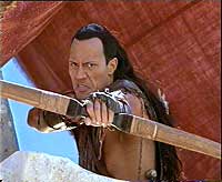 Однако кино почему-то получилось вполне пристойным. Почему? Неужели Дуэйн Джонсон ухитрился что-то там талантливо сыграть? Да нет, ничего подобного. Не скажу, что он совсем уж лишен актерского дарования (кто смотрел его рестлинговые бои, поймет, что у парня есть определенные актерские способности, да еще и неплохое чувство юмора), однако это явно не Аль Пачино. Колоритная гора мышц, не более того. Когда Джонсон пытается изобразить какие-то серьезные чувства, он страшно напрягает мышцы лица и выкатывает глаза. При этом его актерского дарования все-таки не хватает, чтобы в различных сценах регулировать силу напряга лицевых мышц и амплитуду выкатывания глаз, поэтому трудно без знания контекста понять, что сейчас происходит с главным героем: он возмущен, поражен, дико грустит, клянется отомстить врагу или просто страдает запором.
