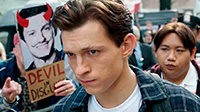 Ну и в результате - началось: Питера и его дорогую тетю Мэй (Мариса Томей) осаждают толпы шакалов-журналистов, в Сети парня конкретно хейтят, многие люди проявляют по отношению к нему откровенную враждебность, так что Хэппи Хоган (Джон Фавро), который к Мэй неравнодушен и присматривает за Питером, переселяет Мэй с Питером в хорошо защищенную квартиру, принадлежащую корпорации Тони Старка.