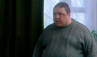 Аркадий сначала пристает к бомжу с совершенно ненужными тому разговорами, затем выговаривает человеку в пенсне по поводу того, что он тут сидит с пустым ящиком, после чего бомж вместе с торговцем мороженым слегка навтыкали Аркадию по его объемной физиономии.