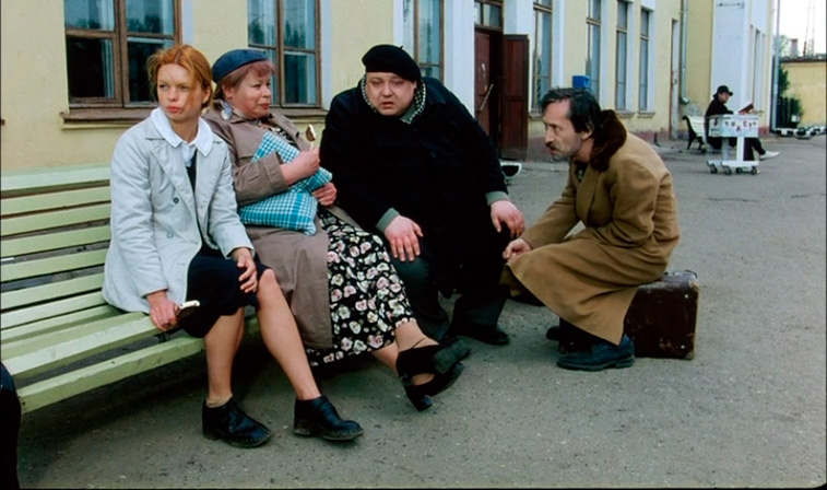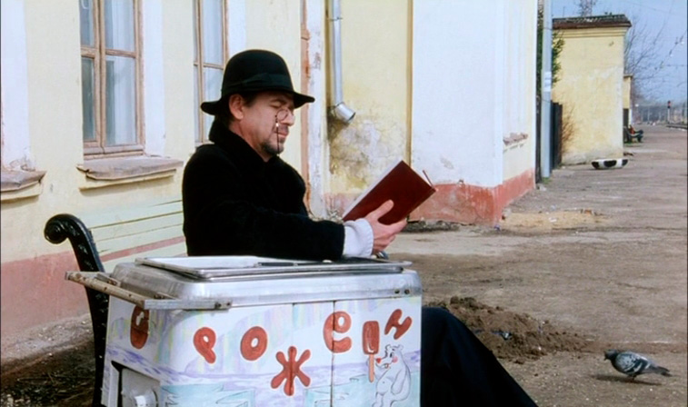 Аркадий Беликов (Александр Семчев), бывший оперный певец, приезжает в маленький провинциальный городок Круглов, чтобы в местной школе учить детей пению. На вокзале он встречает уставшего от пошлости жизни бомжа-философа в пальто (Михаил Гусев), который сам с собой играет в шахматы. Также на вокзале сидит человек в пенсне и с книжкой Чехова, который вроде как торгует мороженым, однако ящик для мороженого пуст.