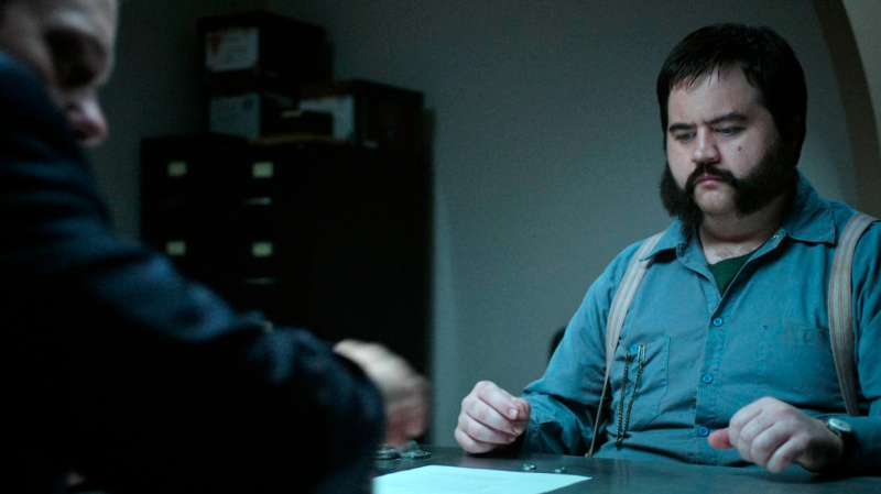 Мы в сериале наблюдаем за тем, как Ларри, к которому Джимми искусно входит в доверие, постепенно начинает раскрываться перед новым другом. И Пол Уолтер Хаузер нашел для него какую-то совершенно удивительную, странную и пугающую манеру разговора. Эта внешность с бакенбардами из Гражданской войны (реальный Ларри так и выглядел, фото будут ниже), эта грудная манера говорить, этот странный смех, эта манера закатывать глаза, этот вроде как невинный и извиняющийся взгляд, в котором на мгновенье может проявляться настоящая бездна - меня эта роль впечатлила безмерно! И она совершенно другая, совсем не такая, как роль в "Деле Ричарда Джуэлла". И из-за этой роли я готов простить сериалу любые недостатки, которые у него, безусловно, есть, потому что у Хаузера это тоже - роль просто-таки выдающаяся!