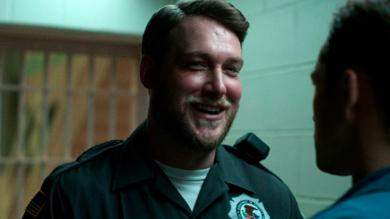 Также очень странно показаны взаимоотношения Джимми с другими заключенными и охраной. Его там вроде как достает охранник Картер (Джо Уильямсон), но вот так достает-достает, угрожает-угрожает, но... ничего в итоге не происходит. Также Картер среди заключенных распространил слух о том, что Джимми - стукач (а ему в реальности и в сериале ФБР пришлось придумать определенную легенду того, как и за что он попал в тюрьму строгого режима), все на парня смотрят страшно угрожающе, а чем это кончится - да ничем. Но стараются, да, что-то там нагнетают с помощью музыки (достаточно навязчивой), да и сцена тюремных беспорядков снята вполне эффектно.