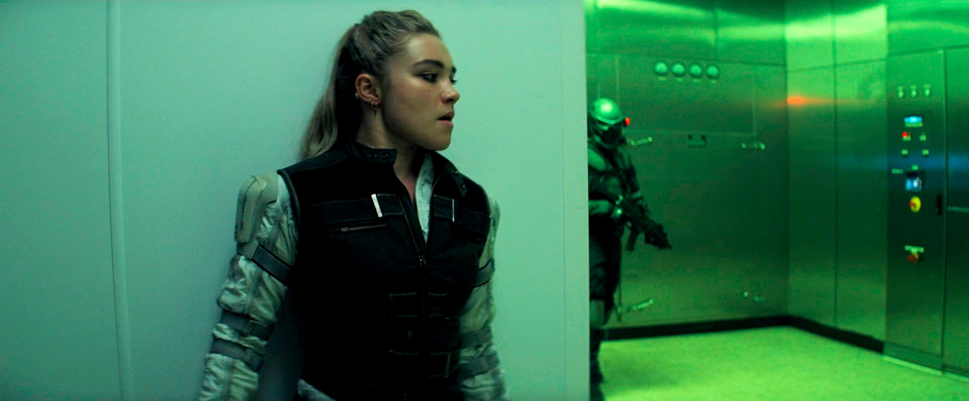 Британская актриса Флоренс Пью, которую я раньше нигде не видел (все собирался посмотреть "Солнцестояние", где она играет главную роль, но все никак не мог собраться, но уж теперь точно соберусь), мне вот прям очень понравилась в роли Елены! Харизматичная, интересная, яркая - на мой взгляд, именно она действительно главная героиня этого фильма, как ни обидно это слышать Скарлетт Йоханссон.