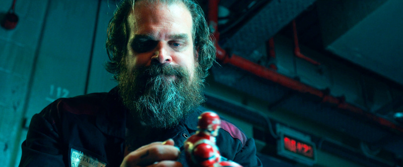 Кстати, в начале фильма нам показывают 1995 год, где персонажи Дэвида Харбора и Рейчел Вайс на пару десятков лет моложе. И они действительно так выглядят - похоже, что это такая компьютерная обработка, потому что молодых персонажей играют именно эти актеры, и это выглядит очень даже эффектно.