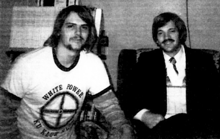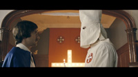 Через некоторое время Сталлворт обнаружил в газете коротенькое объявление: "Ку-клукс-клан, для связи звоните по телефону такому-то". Он просто ради хохмы позвонил по телефону, там назвал свое реальное имя и служебный телефон. Буквально через минуту ему перезвонил некий Уолтер Бричуей (Райан Эгголд), начальник отделения ку-клукс-клана в их городишке.