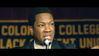 Ладно, хорошо, не вопрос. Однако режиссер этот прием повторяет снова и снова, и на протяжении десяти-пятнадцати минут, пока Стоукли ведет свою зажигательную речь, повторяя те же ку-клукс-клановские лозунги, только повернутые на сто восемьдесят градусов, - "Вся власть черным", "Черная сила" и все такое прочее за все черное против всего белого, - Спайк Ли снова и снова повторяет этот прием, и оно, если честно, раздражает безмерно. Прям как Тимур Бекмамбетов, который как обнаружил прием "слоу-мо", так его и будет бесконечно пихать во все свои фильмы - это очень раздражало.