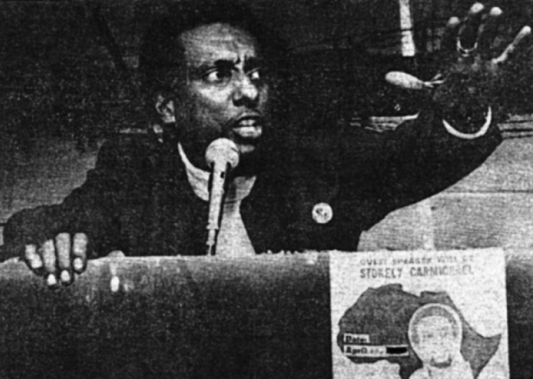 Стоукли Кармайкл, лидер "Черных пантер", во время своего выступления.
