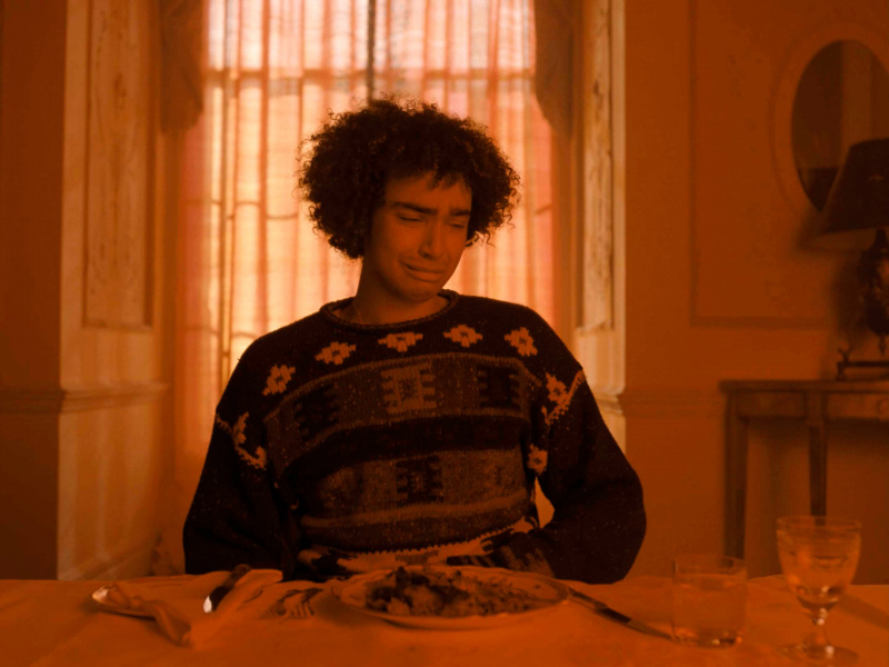 Но вернемся к самой постановке. Как я уже сказал, Эмеральд Феннел и здесь шатает туда-сюда - из жанра в жанр: в кинобазах картина отнесена к "драмам", но это что угодно, но не драма. Я бы ее охарактеризовал как черноюморную сатиру, но в фильме будет достаточно жанрового разнообразия. К костюмированной вечеринке постановщица дойдет уже до конкретного гротескного абсурда, как будто бы она поставила перед собой задачу попробовать в данном произведении почти все, что она видела в чужих картинах.