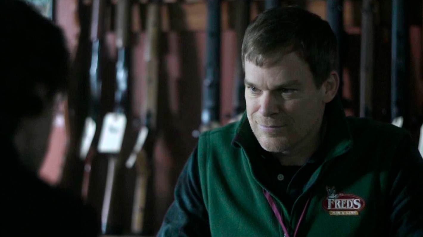 Декстер живет в бревенчатой избушке в лесу, держит коз и работает в магазине Fred’s Fish & Game, в котором продается оружие и всякое снаряжение для охоты и рыбалки. Он встречается с местной начальницей полицейского участка Анджелой Бишоп (Джулия Джонс), индианкой по происхождению.