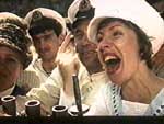 Второй совершенно потрясающий момент в фильме - это когда главные герои случайно попадают на съемку Эйзенштейном эпизода на одесской лестнице из "Броненосца Потемкина". Получается так, что Поллак играет царского офицера, Микита - безногого матроса, а гениальный кадр с коляской, едущей вниз по лестнице, Эйзенштейну подсказал Поллак, который эту коляску случайно столкнул вниз.
