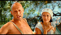 Но это, кстати, и хорошо! Потому что "Дикари" - не столько комедия положений, сколько картина ощущений, воспоминаний и приятной ностальгии. Шамирову удалось создать фильм, очень четко передающий состояние летнего дикого отдыха - чисто российского. За всякими турциями, испаниями, таиландами и мальдивами мы забываем о том, что существует совсем другой отдых: без гламура, без пафоса, без удобств, но если после пятизвездочного отеля в Турции вспоминается только то, сколько денег на это пришлось потратить, то достаточно один раз съездить дикарем вот на такую стоянку - и до конца жизни будешь вспоминать запах моря, посиделки, ночные купания, бурную и всепоглощающую любовь, длящуюся дня два или даже три, забавное происшествие с Толяном (Коляном, Тофиком или Сергеем Петровичем), историю с пропажей билета и прощание с летом перед отъездом. Почему? Да потому что все живое, естественное и очень свое, российское, и неважно при этом, что тот же родной Крым, стараниями одного лысого пряника, уже давно не российский.
