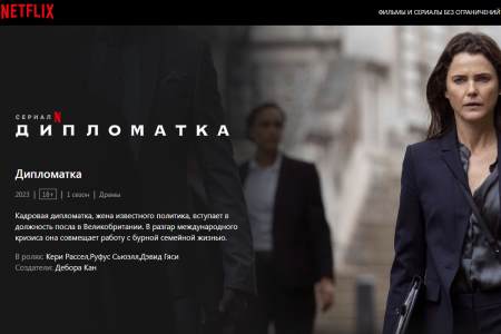Главная героиня сериала «Дипломатка» (именно так Netflix переводит название The Diplomat) Кейт Уайлер (Кери Расселл) — ударница дипломатического труда с огромным опытом разруливания кризисов в горячих точках.