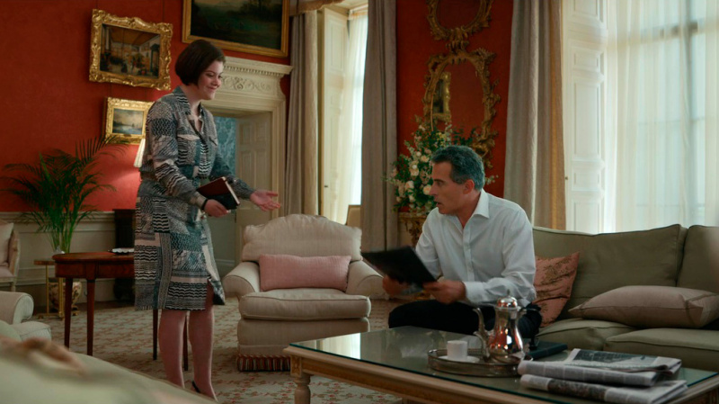 Чем интересен данный сериал? Главная героиня, та самая Кейт Уайлер, она, в общем-то, не сказать что чем-то примечательна. Она не слишком женственная, за своей внешностью явно не сильно следит, одевается исключительно в безликие брючные костюмы серого или черного цвета, и для нее главное - это ее работа. Она считает себя специалистом по Ближнему Востоку, а ее внезапно отправили послом в Великобританию, где она должна играть совершенно несвойственную ей роль, которая ее тяготит. К тому же - разваливающийся брак с мужем, звездой дипломатии, в тени которого она много лет была, - но при этом у них крайне непростые и совсем не закончившиеся отношения.