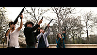 По пути они встречают парочку милых девчушек - Уичиту (Эмма Стоун) и Литл Рок (Эбигейл Бреслин). Девчушки их сначала круто кидают, потом еще раз круто кидают, но в конце концов они все потихоньку подружились.