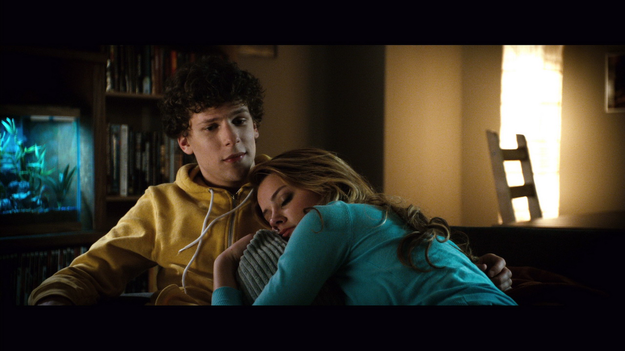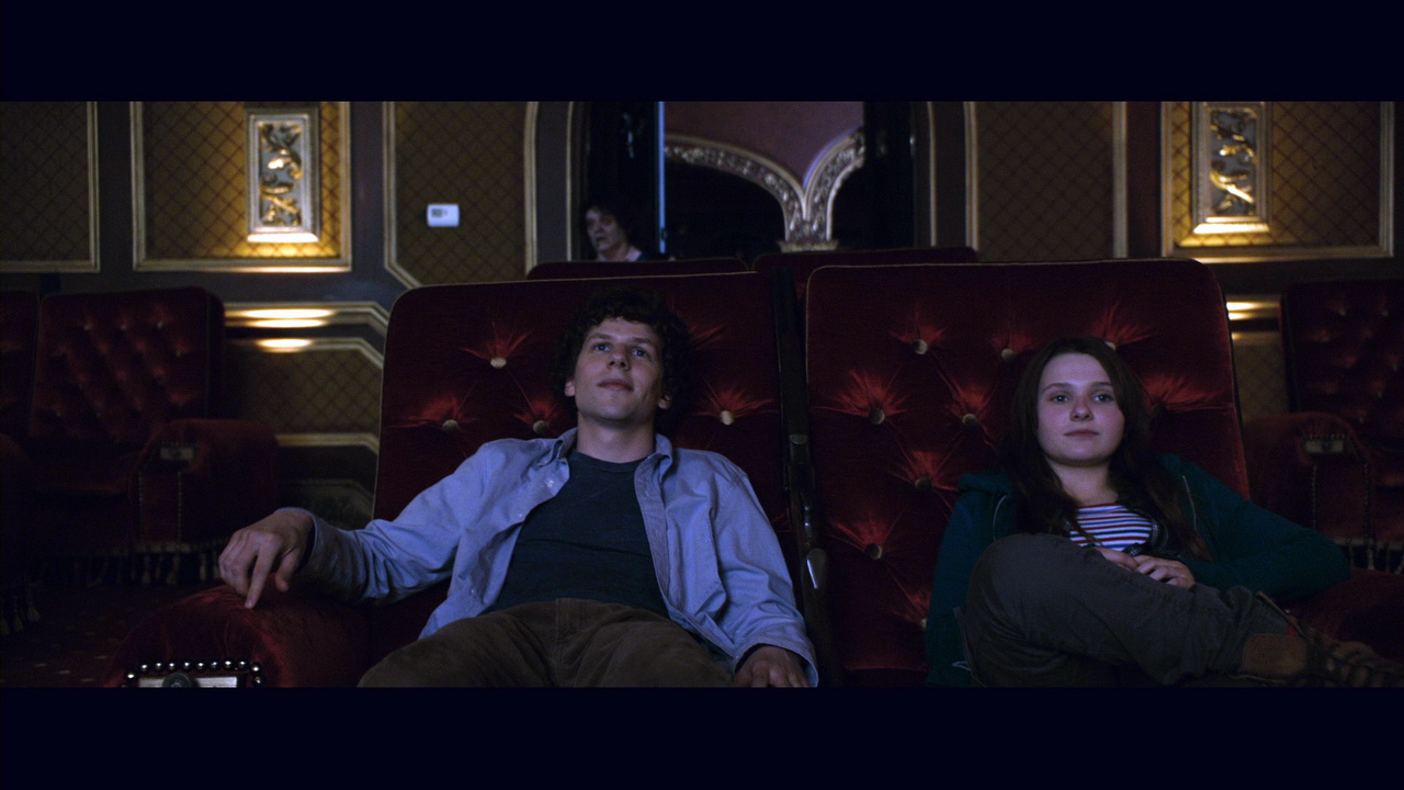 Джесси Айзенберг мне тут не особенно понравился. Ну да, вроде ботан так и должен выглядеть и так себя вести, однако насколько Айзенберг был хорош в "Социальной сети", где на роль нерда-фрика Закерберга подходил на все сто, настолько здесь он, на мой взгляд, не особенно попадает в струю: харизмы ему не хватает, а главное - иронии! Фильм-то - пародия, а Айзенберг играет романтическую драму.