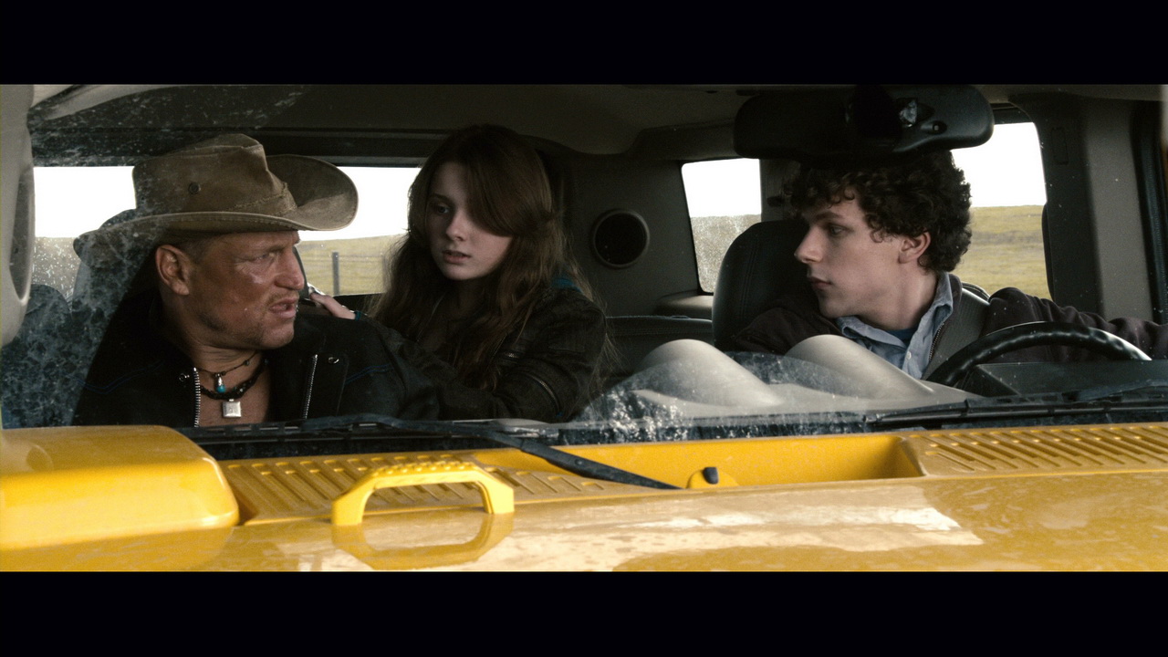 Однако начинался "Зомбилэнд" как более или менее забавный, но ничего особенного собой не представляющий пародийный зомби-трешачок: мутный ботаник в исполнении создателя Facebook Джесси Айзенберга, вполне практичные правила выживания в Зомбилэндии, традиционные зомби жуткого вида, у которых изо рта непрерывно льется кетчуп, подкрашенный для колориту чернилами, всякие "приветы" различным представителям жанра зомби-хоррор, ни одного из которых, впрочем, я не видел - я люблю только пародии на зомби, а на обычных фильмах-хоррорах так хохочу, что проливаю пиво на штаны, поэтому стараюсь их не смотреть.