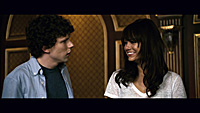 Джесси Айзенберг мне тут не особенно понравился. Ну да, вроде ботан так и должен выглядеть и так себя вести, однако насколько Айзенберг был хорош в "Социальной сети", где на роль нерда-фрика Закерберга подходил на все сто, настолько здесь он, на мой взгляд, не особенно попадает в струю: харизмы ему не хватает, а главное - иронии! Фильм-то - пародия, а Айзенберг играет романтическую драму.