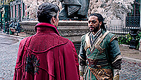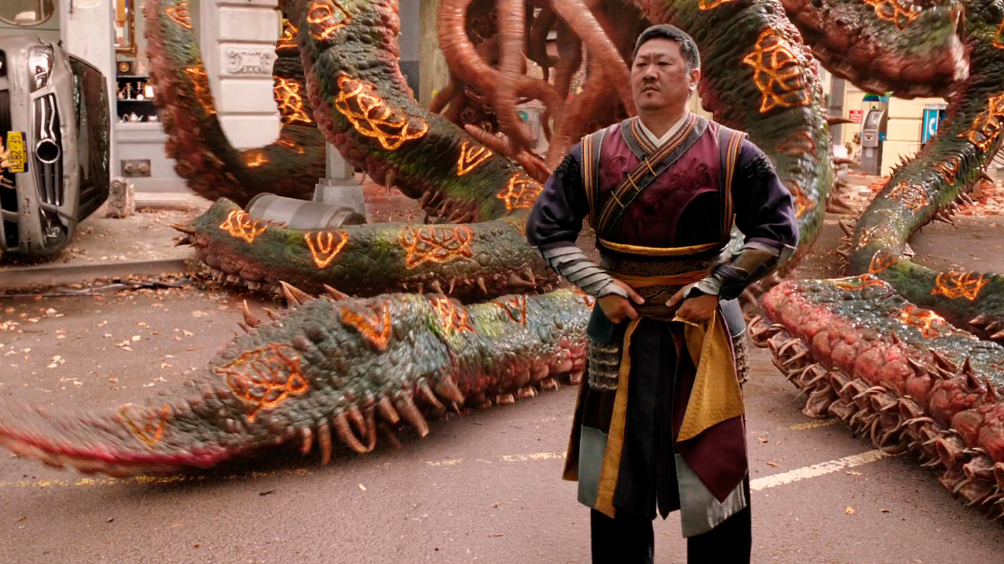 Одолеть монстра было нелегко, но самому Стрэнджу на помощь пришел его старый знакомый Вонг (Бенедикт Вонг) - Верховный чародей монастыря Камар-Таджа, наставник и друг Стрэнджа. Вдвоем они справились с монстром и стали узнавать у девушки, кто она такая и почему за ней охотятся такие страшные демоны.