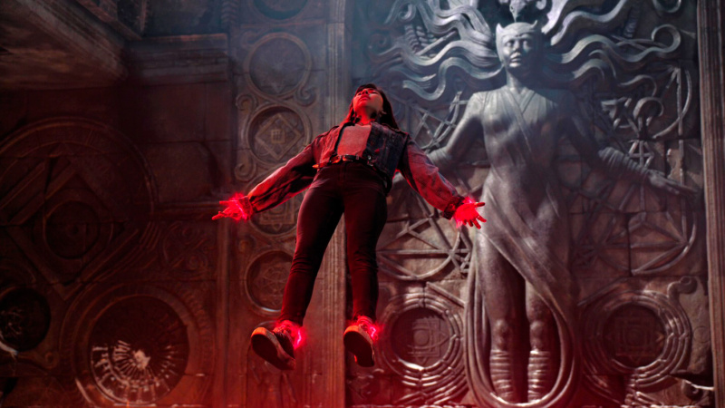 Что у них из всего этого получилось? Чистым продолжением первого "Доктора Стрэнджа" данный фильм не является: он снят несколько в ином стиле, он содержит определенные элементы хоррора и ужастика, и это, наверное, самый страшный фильм "Киновселенной Marvel". К тому же, что интересно, главным антагонистом в нем стала Ванда Максимофф, она же Алая Ведьма, и ее персонажу здесь посвящено, наверное, не меньше времени, чем персонажу Стрэнджа. То есть тут даже не очень понятно: это вообще продолжение сольного выхода Стрэнджа или это и вовсе первый полнометражный сольник Алой Ведьмы?!