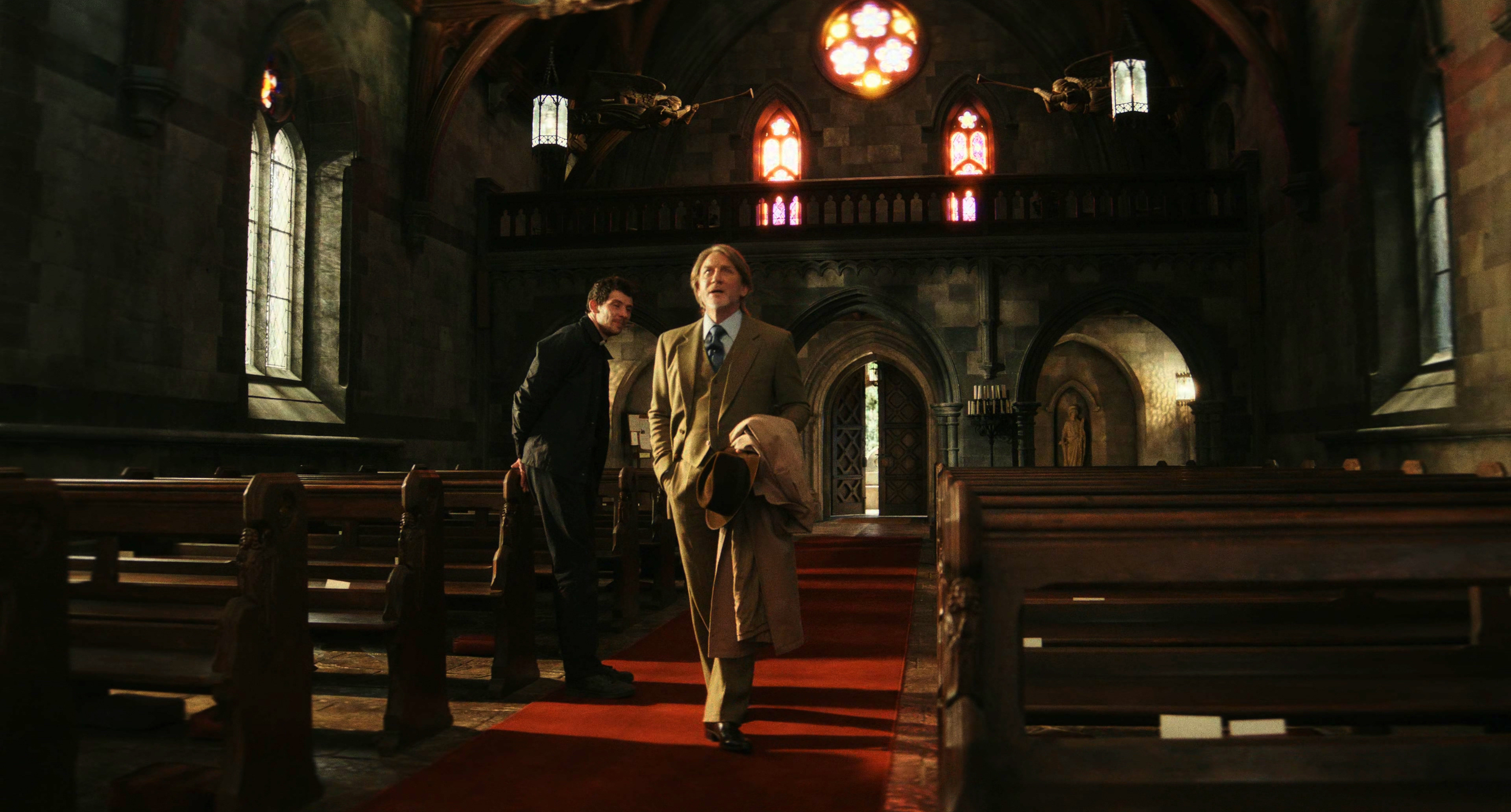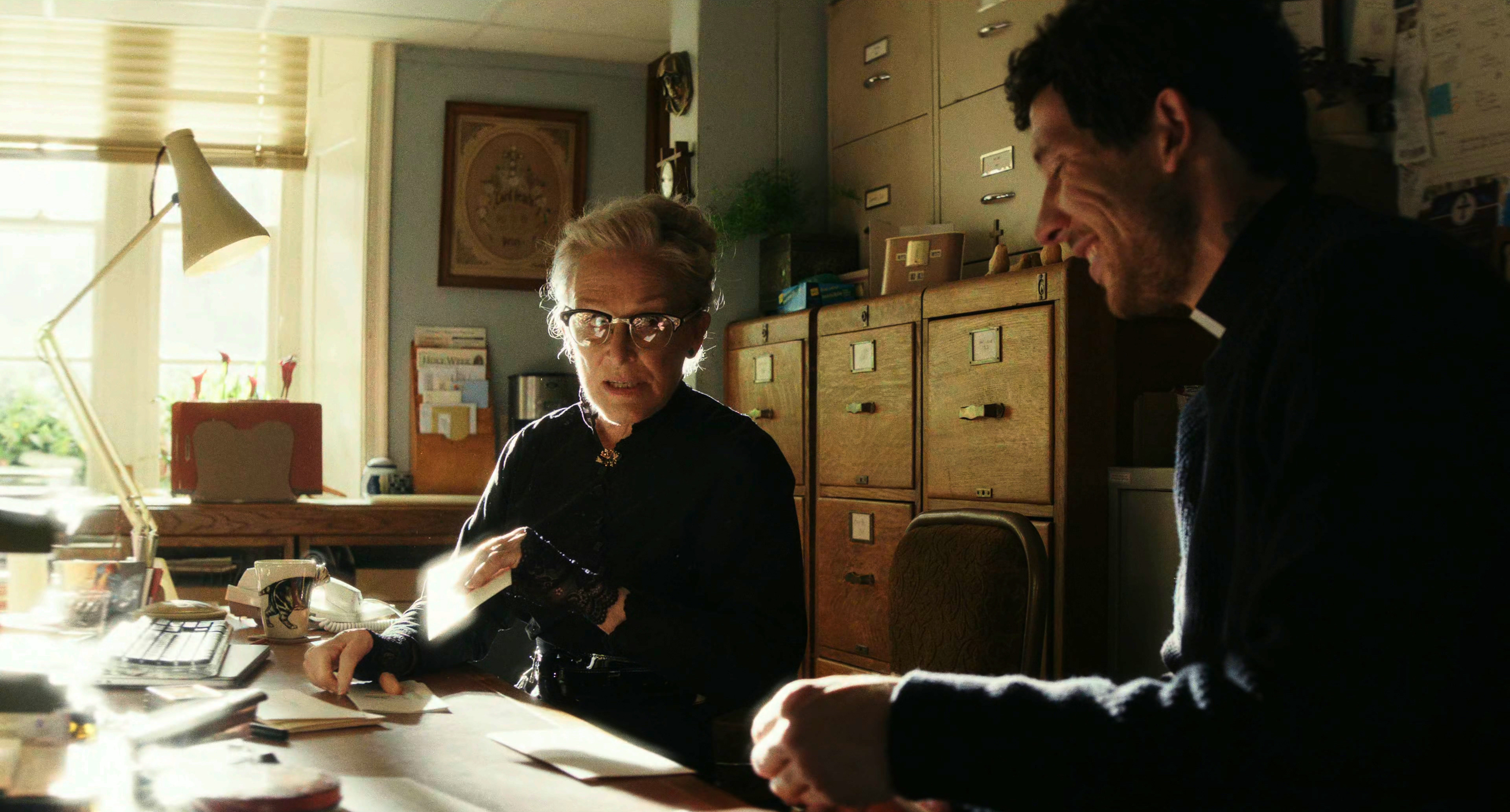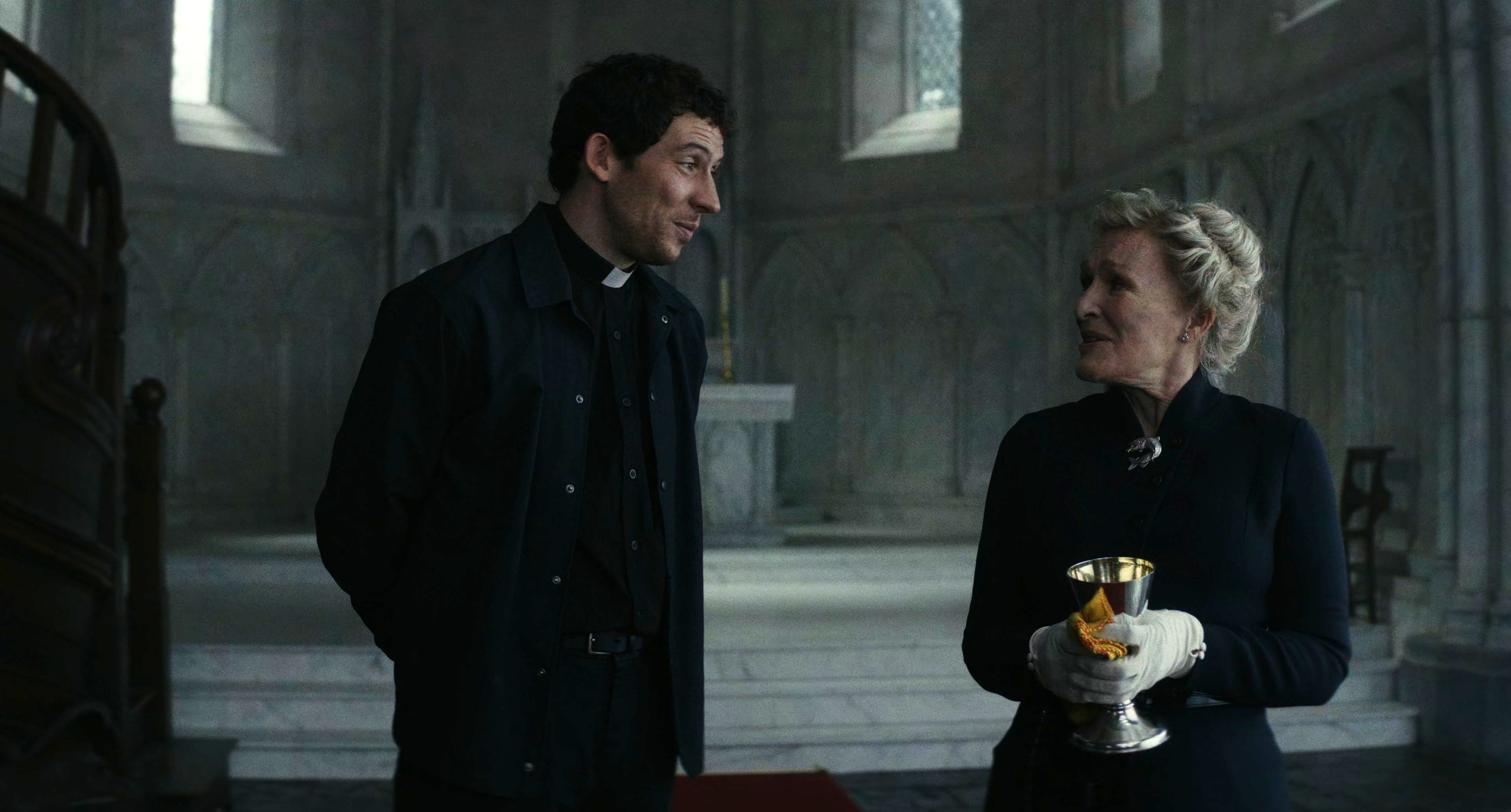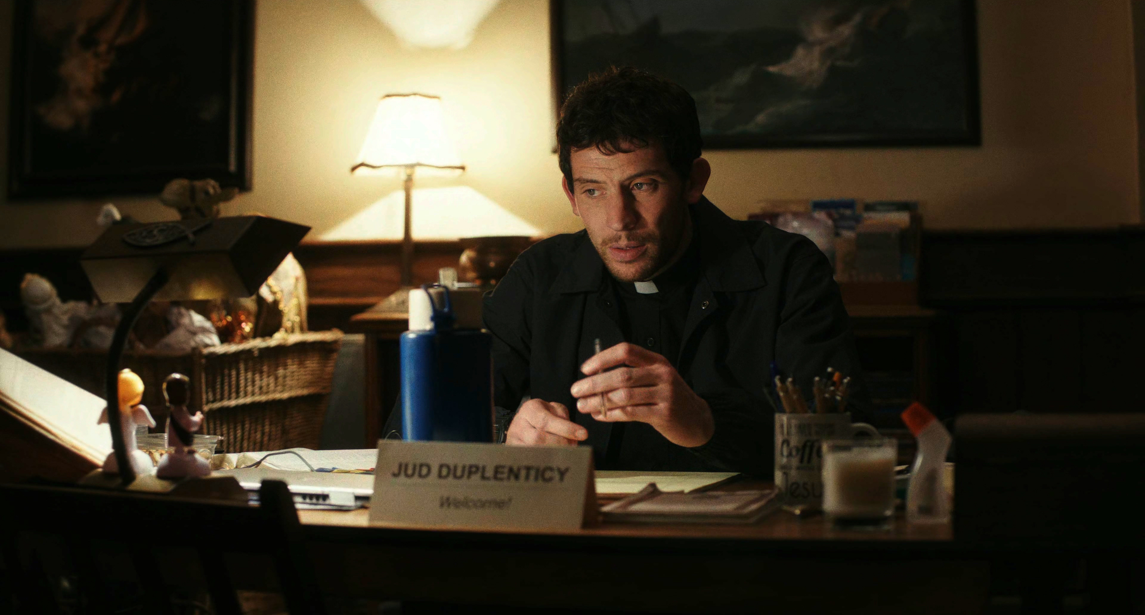 Отец Джад Дуплесити - без сомнений, главный персонаж картины. Он когда-то убил человека на ринге, после чего ударился в религию и изо всех сил замаливает свои грехи. Но этот внутренний зверь в нем время от времени прорывается, и это сыграно здорово. Нам с котом Бубликом не нравится актер Джош О’Коннор еще со времен "Претендентов" (прям по анекдоту - "Ну, не нравишься ты мне"), но нельзя не признать, что Джада он сыграл отлично, и этот персонаж - личность многогранная и непростая. И мы подумали, что с ним вполне возможно было сделать фильм о противостоянии Джада и монсеньора - безо всяких убийств. Потому что это само по себе могло быть интересным.