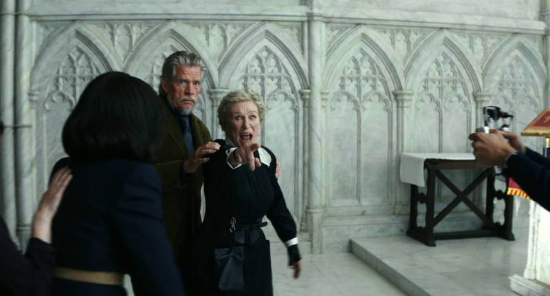 Гленн Клоуз в роли Марты Делакруа - замечательная совершенно. Актриса сама говорила в интервью, что обрадовалась, когда ее пригласили сыграть в третьем фильме франшизы, и она увлеченно работала над этим персонажем, тем более что она раньше никогда не играла подобные роли. Ее Марта - с одной стороны, человек вроде бы не слишком заметный, однако она - фанатичная, достаточно загадочная, и похоже, что ее побаивается сам монсеньер. Ну и в тихом омуте, как известно, черти водятся, хотя зря мы употребляем эту поговорку по отношению к такой богобоязненной персоне.