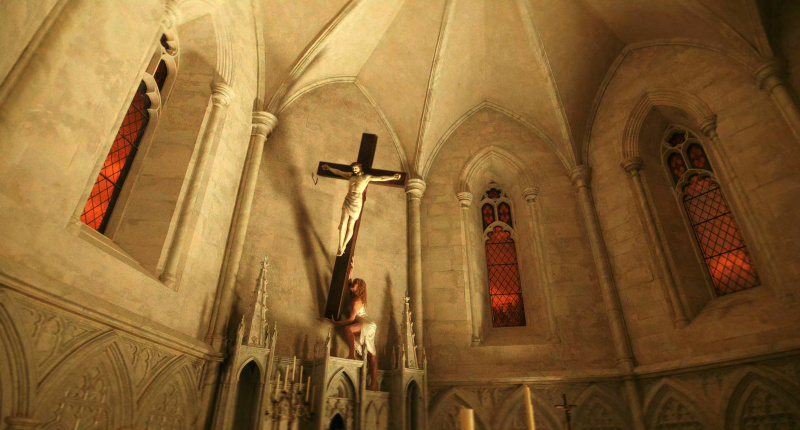 И вот во время очередной проповеди, когда монсеньор Уикс уходит в небольшую кладовку чтобы отдышаться, Джад начинает службу и вдруг слышит, как Уикс падает. Джад бросается к нему и видит, что в спине монсеньора торчит какая-то штука с железной головой в виде Дьявола.