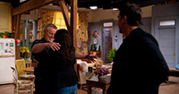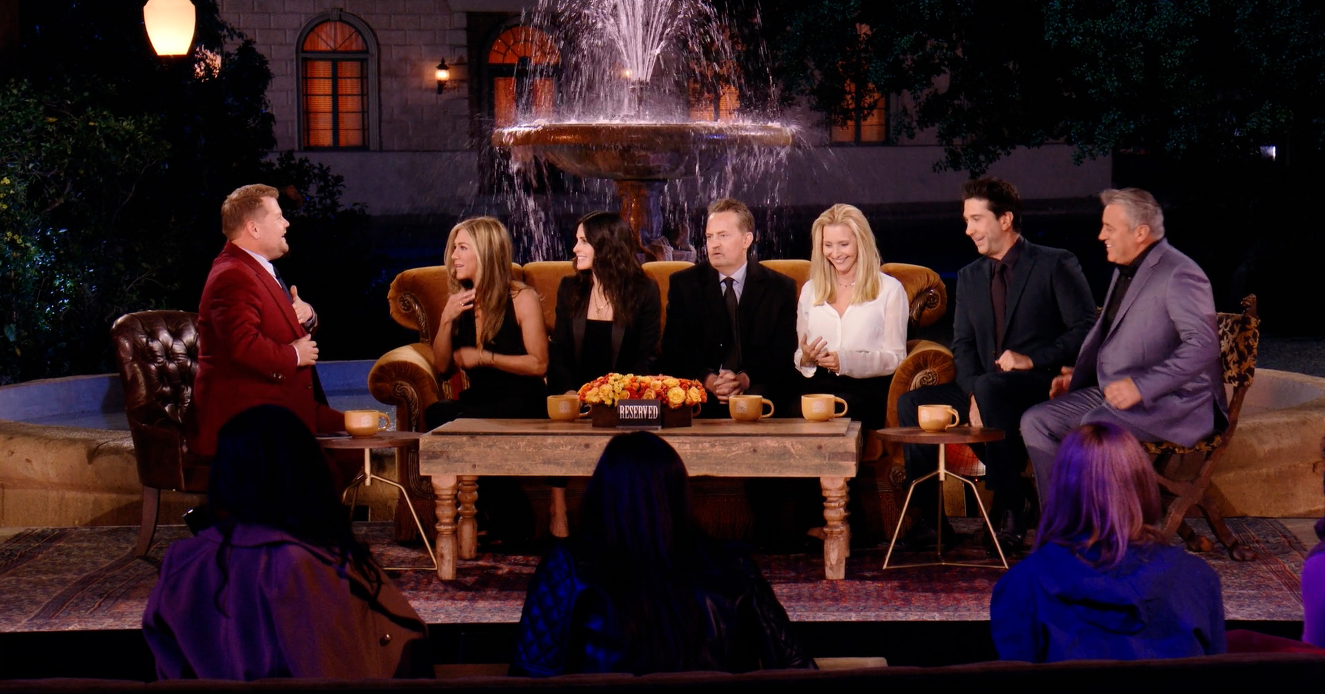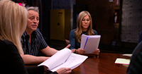 Далее действие будет происходить то там, то там - то в декорациях квартиры, где шестерка актеров будет обмениваться различными воспоминаниями, сопровождаемыми флешбэками из сериала, то на диване, отвечая на вопросы ведущего.
