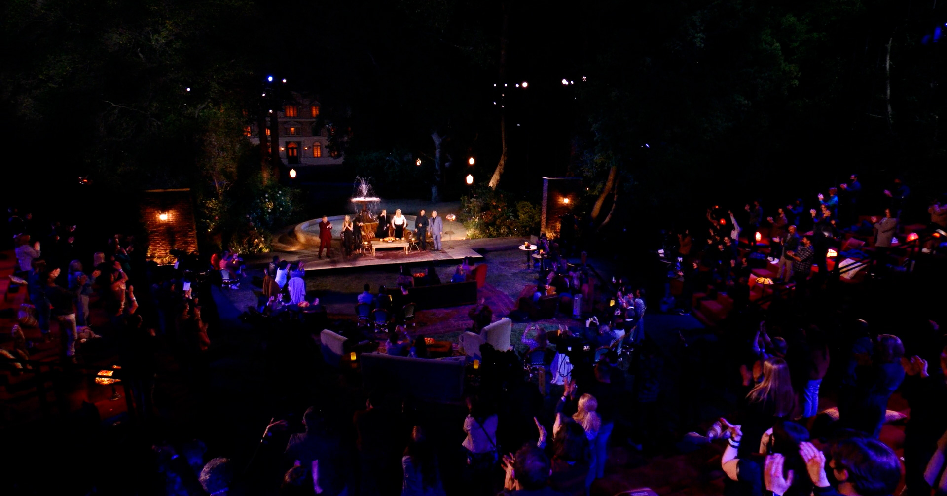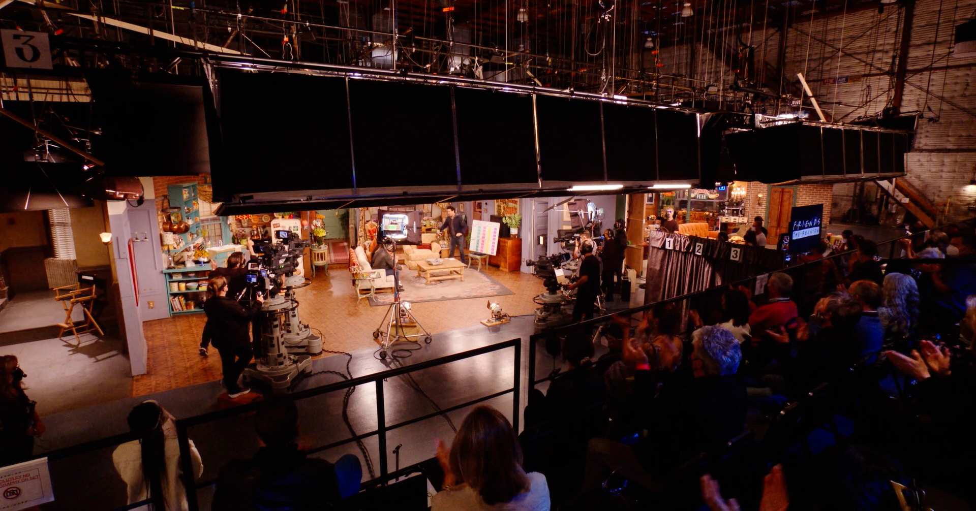 После этого они перемещаются на лужайку со знаменитым диваном перед фонтаном из фирменной заставки сериала. Актеры сидят на этом диване и отвечают на вопросы ведущего - Джеймса Кордена. В зале в амфитеатре сидят зрители, также там будет несколько персонажей из сериала.