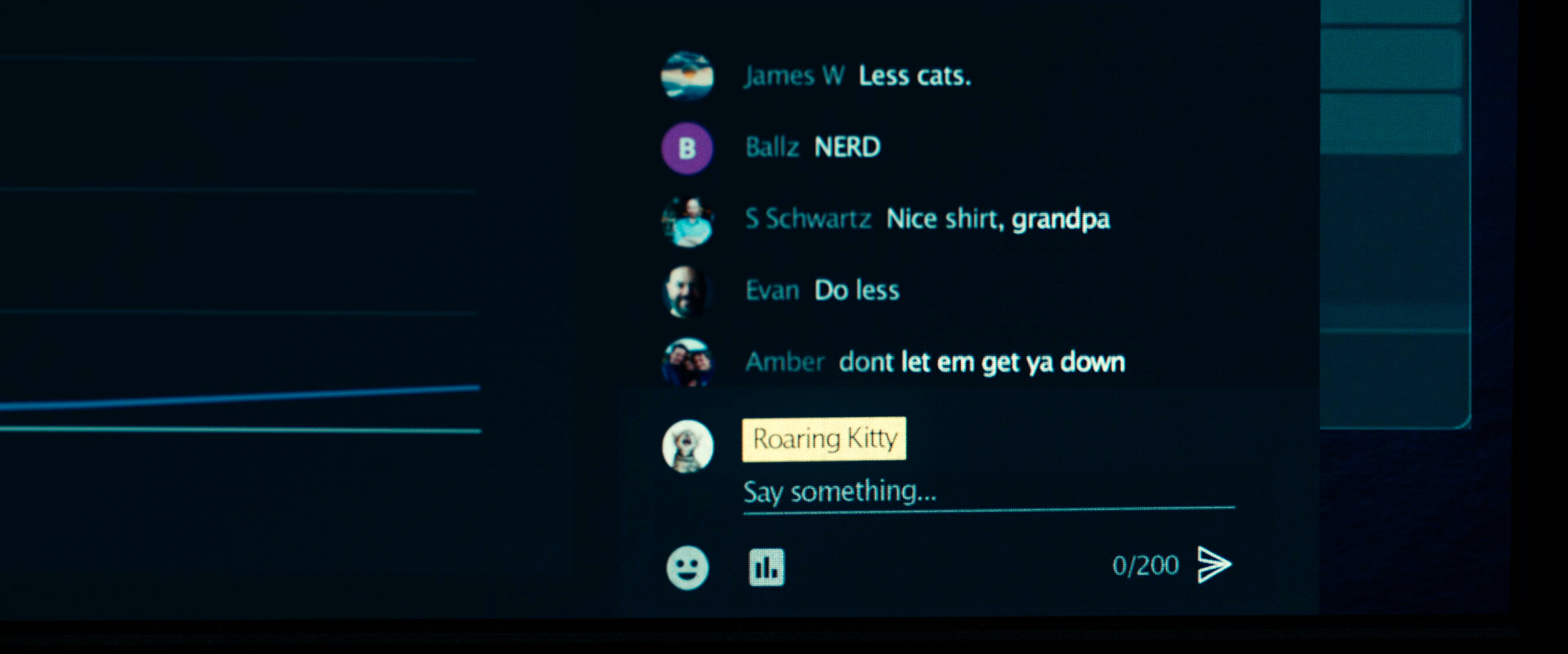 В нерабочее время Кит из подвала своего дома ведет стримы под псевдонимом Roaring Kitty (Ревущий Котенок) в YouTube и в разделе r/wallstreetbets на Reddit, посвященном всяким операциям с акциями, где тусуются такие же мелкие сошки, как и Кит. В стримах он обсуждает всякие вопросы, связанные с фондовым рынком, акциями и так далее, но его канал не пользуется никакой популярностью.