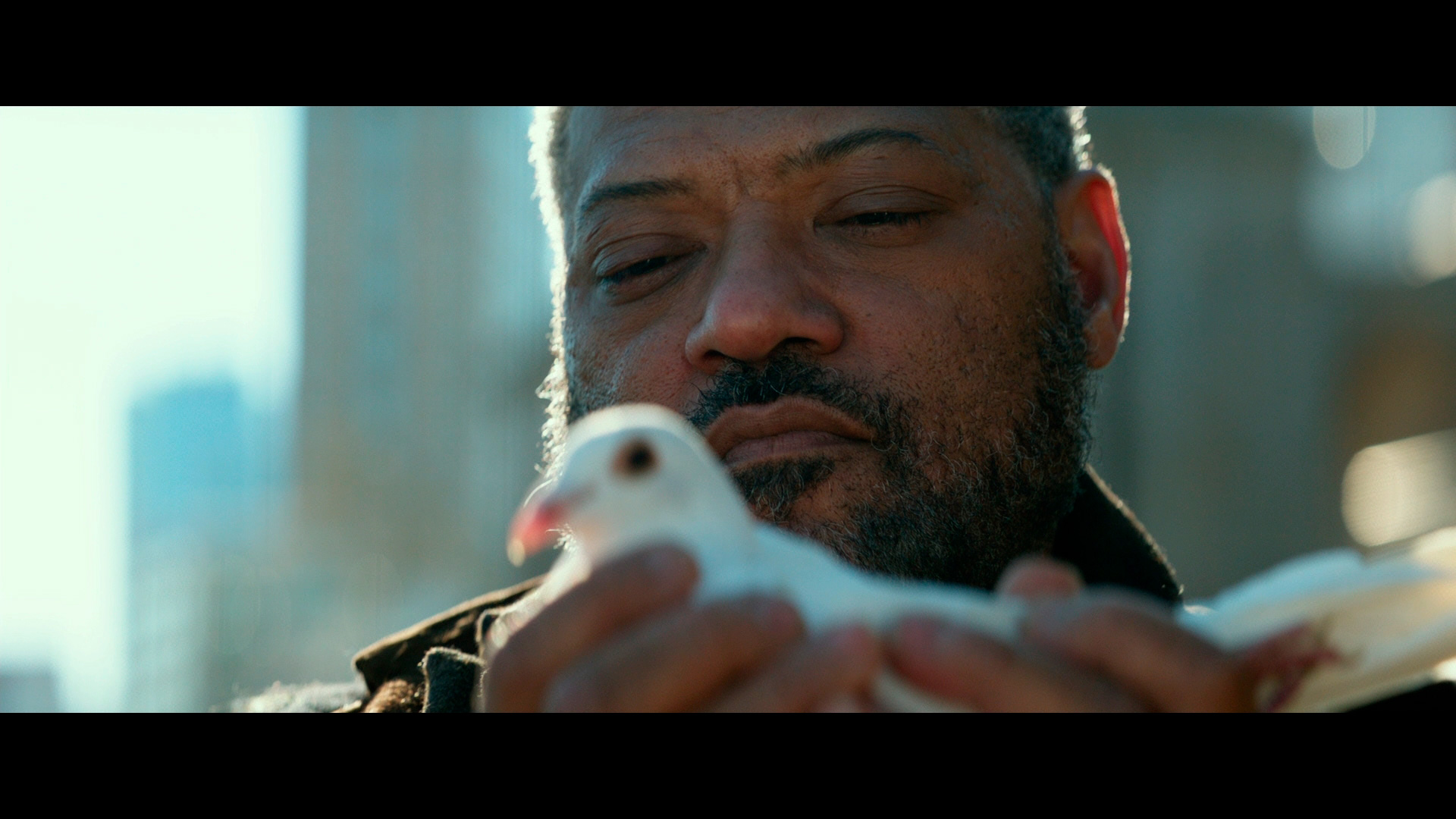 Ну и неплохой идеей было сделать встречу Джона с королем бомжей и голубей, которого сыграл Лоуренс Фишберн: эдакая встреча Нэо и Морфеуса, где Нэо слезно просит снабдить его убийственным оружием. Морфеус ему подло дает маленький пестик с семью патронами и все, а вот чего Джон от этого расстраивается - непонятно совершенно: независимо от того, с каким оружием или вообще без оружия Джон приходит на вечеринку, он все равно набирает этого оружия две телеги у убитых им охранников, а кроме того, обычно любой его пистолет умеет выстреливать произвольное число раз. В данном случае что ему мешало прийти вообще без пистолета и сразу отобрать его у убитого им охранника. Ему же все равно чем убивать, правильно?