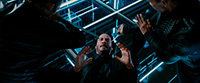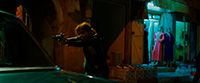 Вот это действительно и поставлено было очень неплохо - в парадигме компьютерной игры, прежде всего - и смотрелось отлично. Причем лучше всего постановщику удались сцены, когда Уик сражается против одного-двух противников, - при этом появлялась хоть какая-то осмысленность. Потому что чем больше против него выставлялось бойцов, тем более мультяшно это все смотрелось. Кроме того, скажем честно - уровень "кунг-фу" Бабы Яги по сравнению с прошлыми фильмами возрос очень несильно, а главный убедительный прием, который он освоил, - это поднести пистолет прямо к голове врага и выстрелить в упор. На моей памяти в третьем фильме он этот прием повторил раз сто, не меньше.
