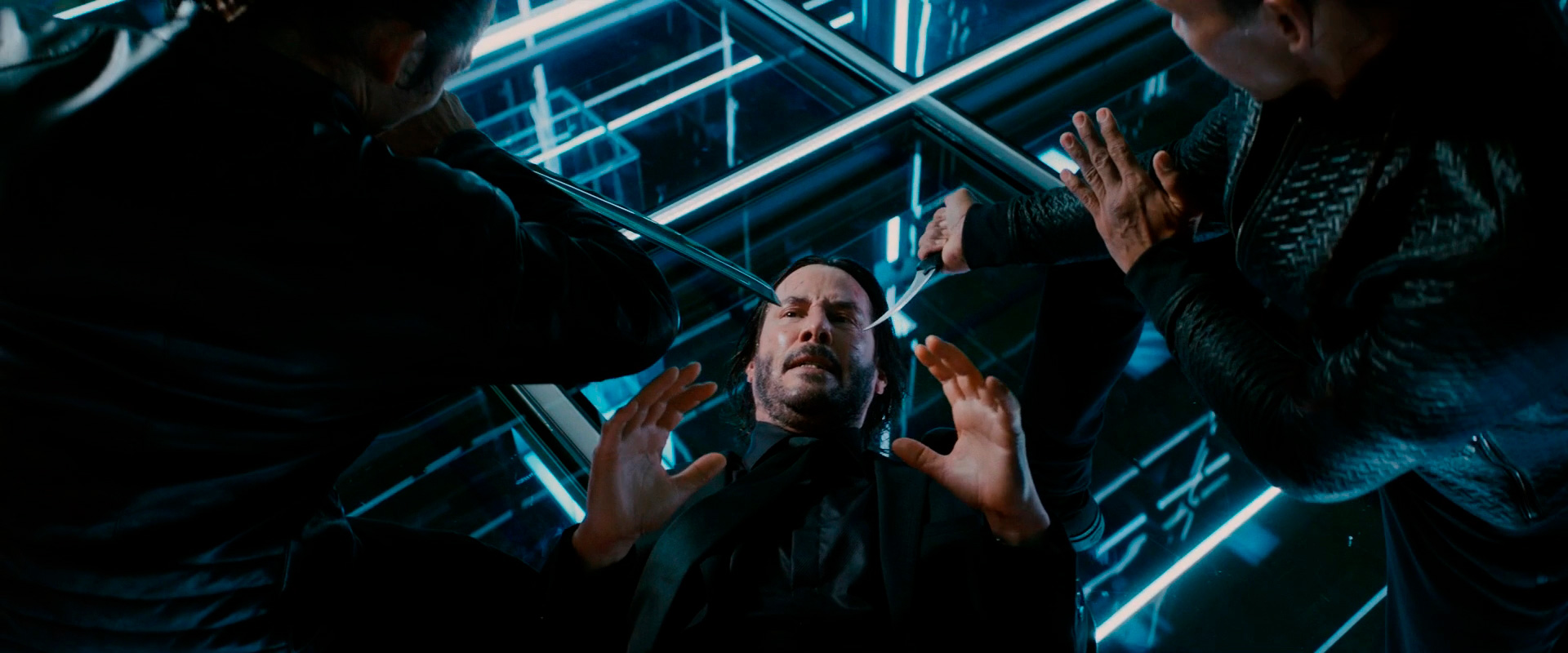 Про первого и второго Уика больше ничего говорить не будем - это комиксоидные боевички, снятые по настолько тупым сценариям, что это смотрелось бы забавной пародией, если бы не преподносилось совершенно серьезно, чему особенно способствует совершенно безэмоциональная физиономия Киану Ривза, которому такие роли идут, как Соеву пенсне.
