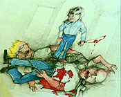 Разумеется, Том затаил жуткую злобу. Его сестру имеет право трахать только он сам или папа, но никак не Эван. Поэтому Том поджег собаку и заложил динамитную шашку в почтовый ящик соседнего поместья, в результате чего молодая женщина с ребенком на руках лишилась и головы, и ребенка. И вот тут Эван снова потерял сознание и частично амнезировался... А когда снова вернулся в сознание, мамочка повезла Эвана на свидание с долбанутым папашей - ну, чтобы у парнишки не было синдрома безотцовщины, - и папаша сыночка чуть не придушил. Вот такое у Эвана было счастливое детство...
