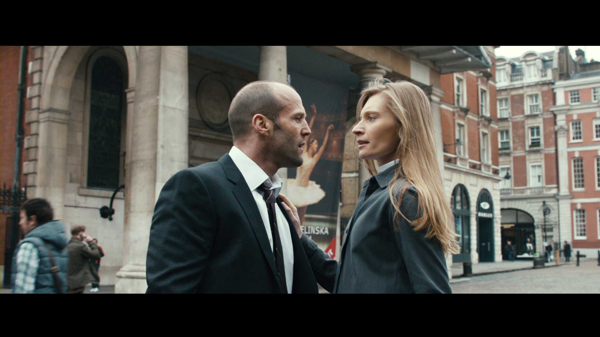 Стэйтэм, правда, тут не слишком похож на сильно опустившегося бывшего военного, потому что, когда он приводит себя в порядок и надевает обычный костюм, ничто не выдает в нем бомжа, занявшего чужую квартиру. Впрочем, это все - чисто кинематографические условности, потому что играет он тут хорошо и характер у него вышел, как обычно для таких фильмов, намного более живой, чем в американских боевиках.
