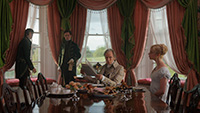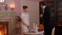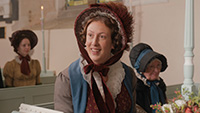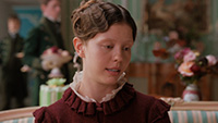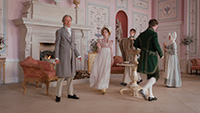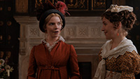 Костюмы персонажей - отдельный аспект для изучения, и там прежде всего - платья и костюмы самой Эммы. Мало того что они невероятно разнообразны и интересны (это же надо было добиться, чтобы я на такие вещи начал обращать внимание), так они еще соответствуют повествованию, то есть отражают определенное отношение самой героини к тому, в чем она участвует. И это тоже просто здорово! И над одеждой героини серьезно работали, это хорошо видно. Ну и отмечу также костюмы папеньки, мистера Вудхауса, рисунок и цветовая отделка которых некоторым образом совпадает с диванами и креслами, на которых он сидит, настороженно пытаясь уловить следы сквозняка, и там порою кажется, что над креслом возвышается только физиономия самого папеньки.