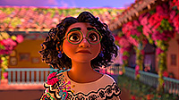 Также заметим, что у Мирабель есть очки, что в первый раз встречается у диснеевских принцесс (а что Мирабель именно диснеевская принцесса - в этом нет никаких сомнений, несмотря на то что у нее нет не только принца Чарминга, но и даже забавного болтливого спутника, за что спасибо создателям фильма, ибо надоели уже эти спутники, честное слово), но зато у нее огромные глаза на пол-лица, которые хорошо что хоть границы этого лица все-таки не покидают.