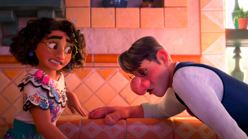 "Энканто" - это, конечно, чисто диснеевский анимационный фильм, причем это практически мюзикл: в диснеевских фильмах герои нередко прерываются на то, чтобы спеть грустную песенку, которая покажет, как им одиноко, или чтобы спеть веселую песенку, которая решит все проблемы, - однако здесь песенных номеров несколько больше, чем, например, в "Рапунцель: Запутанная история".