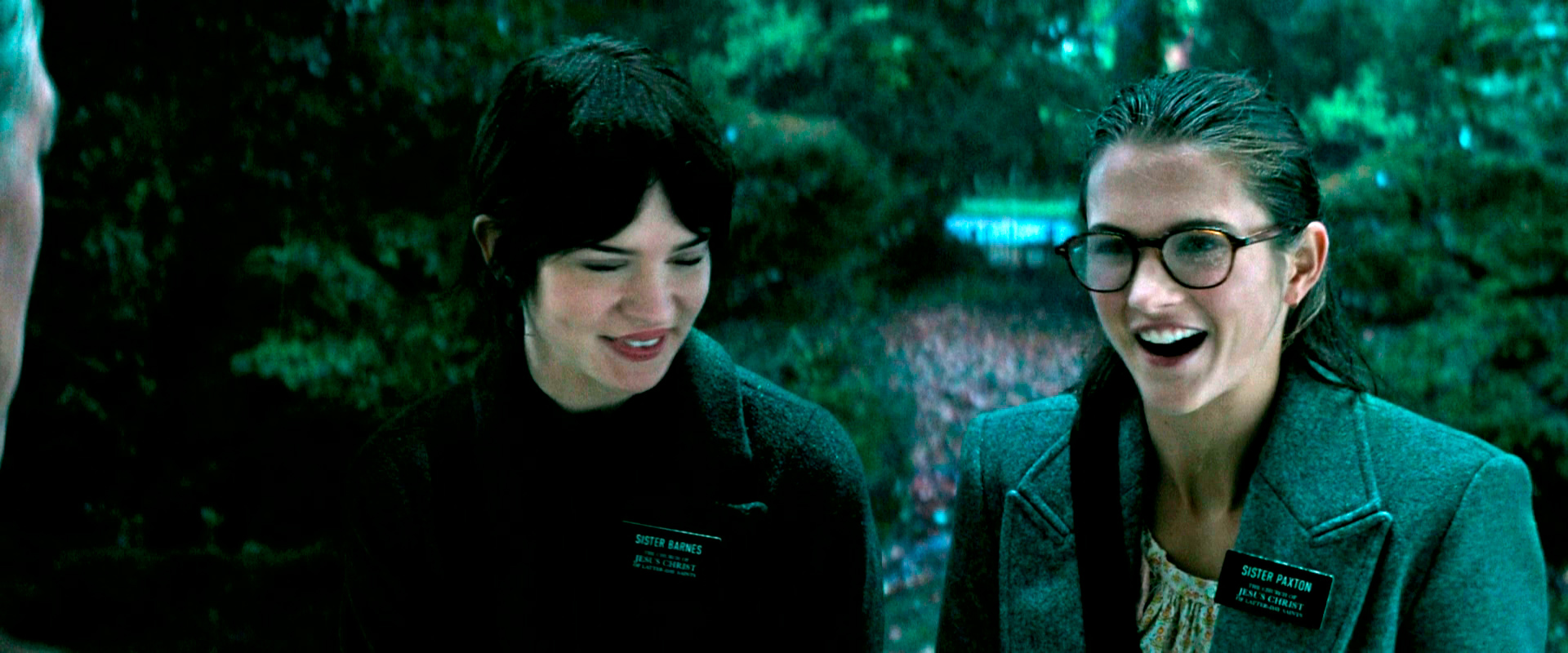 И кроме всяких рассуждений об общем сюжете многих различных религий (признаемся сразу - с Гором и Кришной мистер Рид все-таки налажал) и параллелях заимствований в религиях, музыке и настольных играх, мистер Рид играет с девушками в эдакие зловещие мыслительные шахматы, заставляя их сомневаться в своей вере, а потом ставя их перед жутким выбором.