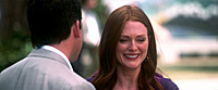 Джулианна Мур в этом фильме шла по ровной дорожке дамы в кризисе среднего возраста, которая понимает, что в конце концов от старого мужа, который внезапно замолодился в холостяцкой ипостаси, все равно никуда не деться. Отыграла ровно, но без огонька. Хотя ее взгляд на бухгалтера в исполнении Бэйкона был настолько безразличен, что мы с котом Бубликом сразу воскликнули: "Верим! Ну да, ему сразу хочется дать по физии"!