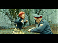 Так оно, с одной стороны, и произошло, но с другой - картину через очень непродолжительное время начинает уносить в весьма забавную шизу. Красная Шапка, мудохающая мента в лесу. Сестрица Аленушка с братцем Иванушкой, у которого глаза поблескивают кроваво-красным. Старичок-лесовичок - то ли замшелый Фродо Беггинс, то ли усохший и спившийся Гэндальф. Спасшиеся после авиакатастрофы командир корабля и его любовница-проводница, поющие по-венгерски задорную песню.