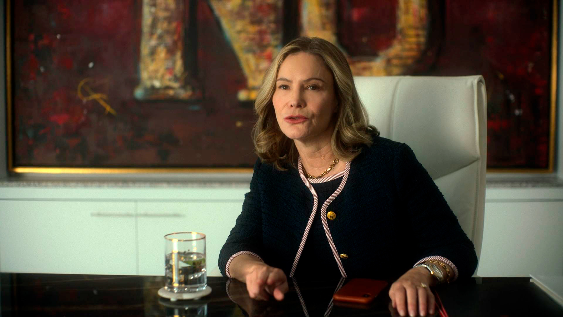 Теща Дороти Лорейн, которая та еще гнида, особенно первоначально, тоже типичная протрампистка-эксплуататорша. Страшно богатая, страшно циничная, ей наплевать на всяких остальных людишек, она озабочена только выколачиванием из них денег. У нее на стене офиса тоже не написано огромными буквами MAGA, зато там написано огромными буквами слово "Нет", но мы не знаем, что это означает: возможно, ответ на просьбу о помощи.