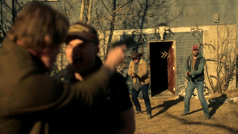 Также шериф является предводителем целой группы таких же токсичных мужланов, которые хорошо вооружены и твердо вознамерились сделать Америку снова великой, благо у них хороший запас патронов.