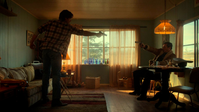 Также прямо-таки подчеркивается, что главные негодяи - они конкретно ядерный электорат Трампа. Шериф Тиллман, никогда не расстающийся со своей ковбойской шляпой, конкретный альфа-самец, абьюзер, расист, ревностный католик и все такое, а вот почему у него на шляпе метровым буквами не написано MAGA - это прям какая-то сценарная недоработка. Женщина у шерифа должна, во-первых, заткнуться, во-вторых, делать, что велит муж, а, в-третьих - тут не будет никаких третьих, потому что первых двух достаточно для счастливой семейной жизни. А если жена ослушается, то шериф ее будет бить смертным боем, потому что иначе как вызвать уважением у женщины, которая перед богом поклялась принадлежать тебе телом и душой? Больше никак.