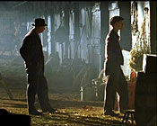 Гэри Росс решил не выдирать отдельные куски, а взял практически весь роман и, аккуратно компрессируя с различным уровнем сжатия всевозможные сюжетные линии, уложил это все в два часа экранного времени. Получилось, если говорить об изложении романа в фильме, не очень хорошо. Совершенно неровно. Я прекрасно понимаю, что по-другому, в общем-то, получиться и не могло, но все-таки слегка раздражает, когда целые длиннющие сюжетные куски даются минутными полунамеками, а какие-то отдельные эпизоды растягиваются на пять, десять и более минут. Получается как у паровоза, который мчится от станции к станции с такой дикой скоростью, что пассажиры даже не успевают рассмотреть вид из окна, а потом на каком-то полустанке останавливается и торчит там полчаса-час, предоставляя пассажирам, одуревшим от тоски, разглядывать стену станционного туалета, на котором написано сами понимаете что.