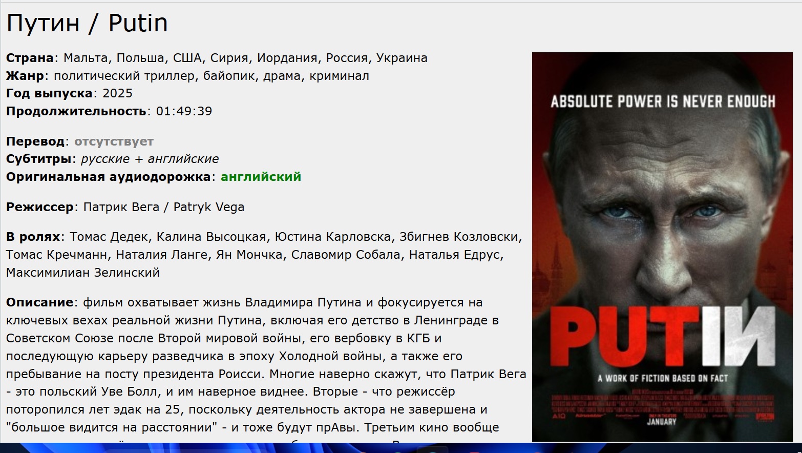 Настасья Горбачевская, Фильм.ру