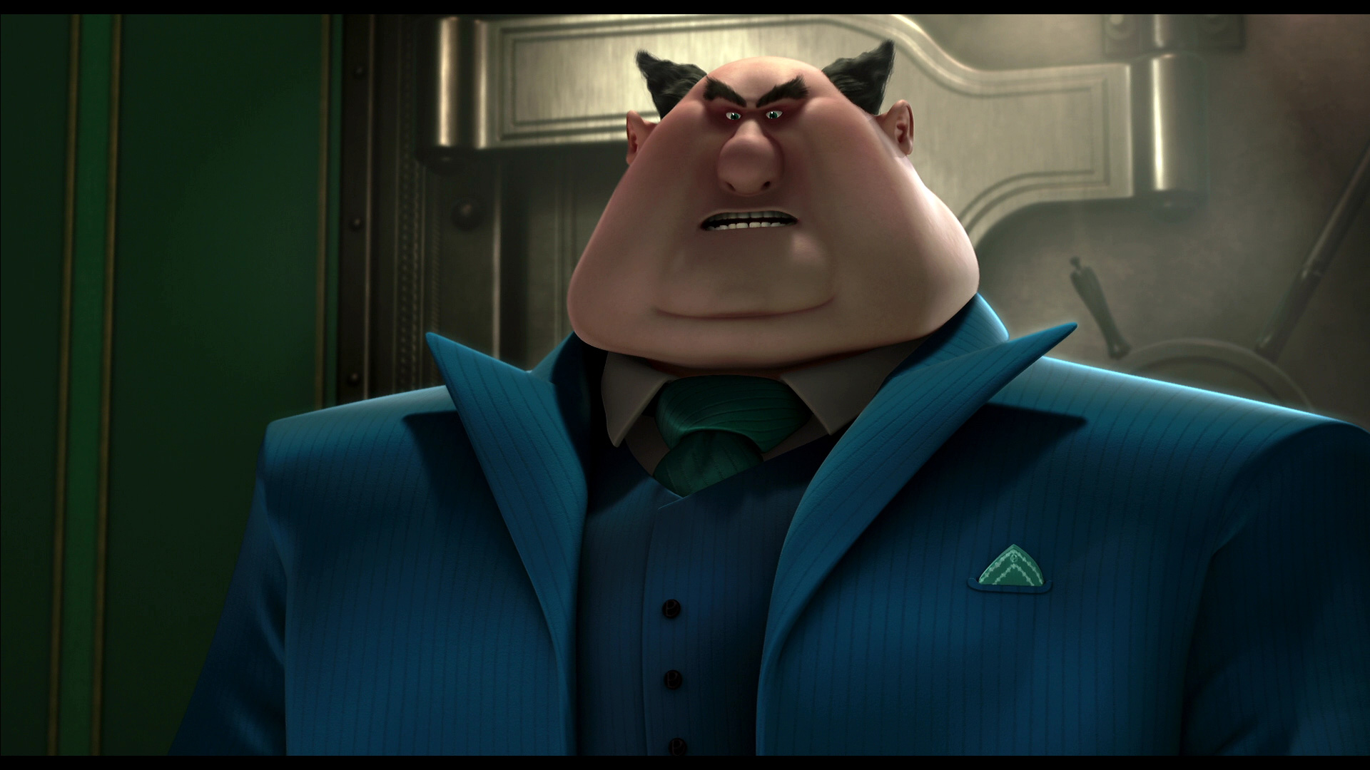 Очень здорово сделан глава Банка Зла - Перкинс. Монументальный мужчина с треугольной головой и малюсенькими, близко посаженными глазенками - образ очень классный!