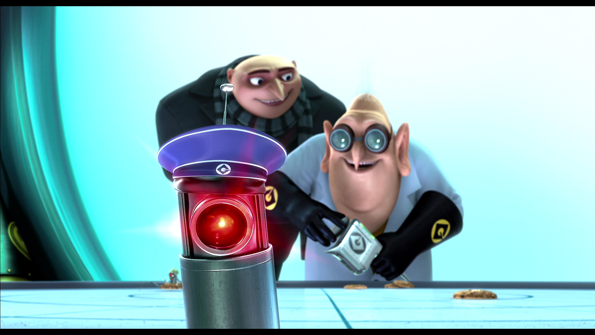 У миньона-ди джея на плейере вместо "Blue-Ray Disk" написано "Gru-Ray Disk"