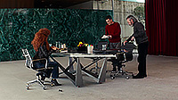 Также поставлено и снято это интересно, оригинально и эффектно: сама манера постановки заметно влияет на восприятие картины. По сценарию миллионер отдал под репетиции и съемки большое здание, которое практически не используется. В этом здании много просторных и совершенно пустых помещений, лишенных мебели, и именно в них проходят репетиции. Оператор (Арнау Вальс Коломер) при этом находит очень интересные ракурсы и настолько умело выстраивает кадр, что это само по себе работает просто отлично и обращает на себя внимание.